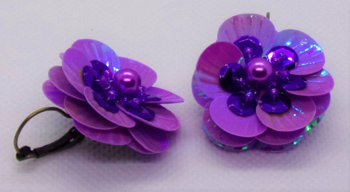 Description: Purple AB Sequin Iridescent Flower Earring